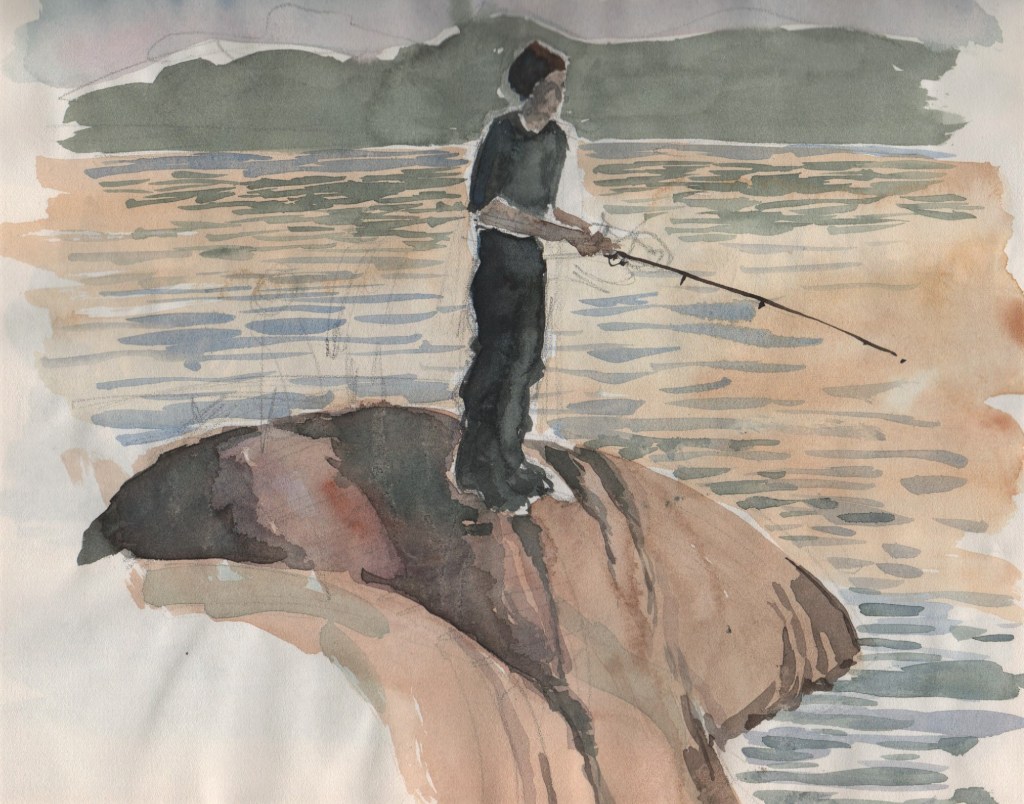At ten o’clock I boiled tea at the church landing, sun still fresh in the pine boughs at my back, shadows on the clapboard wall flutter and rest in time with wind’s October whisper. Motorboats are gone, the loons are leaving. Across the bay a handsaw wows, trimming boards to hold back winter’s seep. A wooden skiff comes down the channel, angles to the landing where we chat, the barefoot owner heading to the wharf for shingles, but I ‘ll be on the road tomorrow. I’ll slide under the red-leafed veil that marks this world apart. It readies itself for sleep as first snow sifts into black water.