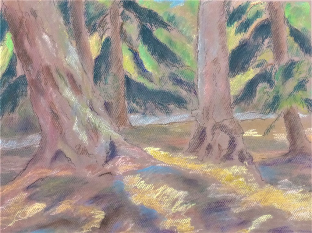My treatment for prostate cancer included forty blasts of radiation at the Cancer Clinic of the Royal Jubilee Hospital in Victoria. I cannot say enough good things about the Clinic and its staff. I felt supported and cared for. Nevertheless, at the end of each radiation episode, I needed to dispel the feeling of being caught up on a conveyor belt of treatments. Before joining the other conveyor belt of Highway 17 north to home, I spent an hour walking in some of Victoria’s beautiful open spaces. One of my favourite places was Mount Douglas Park, especially the southeast corner of the park where there is a grove of ancient Coast Maple trees and a trail down to the beach where a little creek enters the ocean. I return to this place often.
